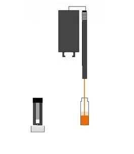 Estas muestras (hasta aproximadamente 100 mL) se aspiran idealmente en el lazo de muestras (posiblemente varias veces) a través de la aguja (primer eje Z) y luego se liberan sobre la columna SPE (segundo eje Z).