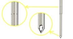 Punta afilada para perforar un septum sin extraer partes del septum.